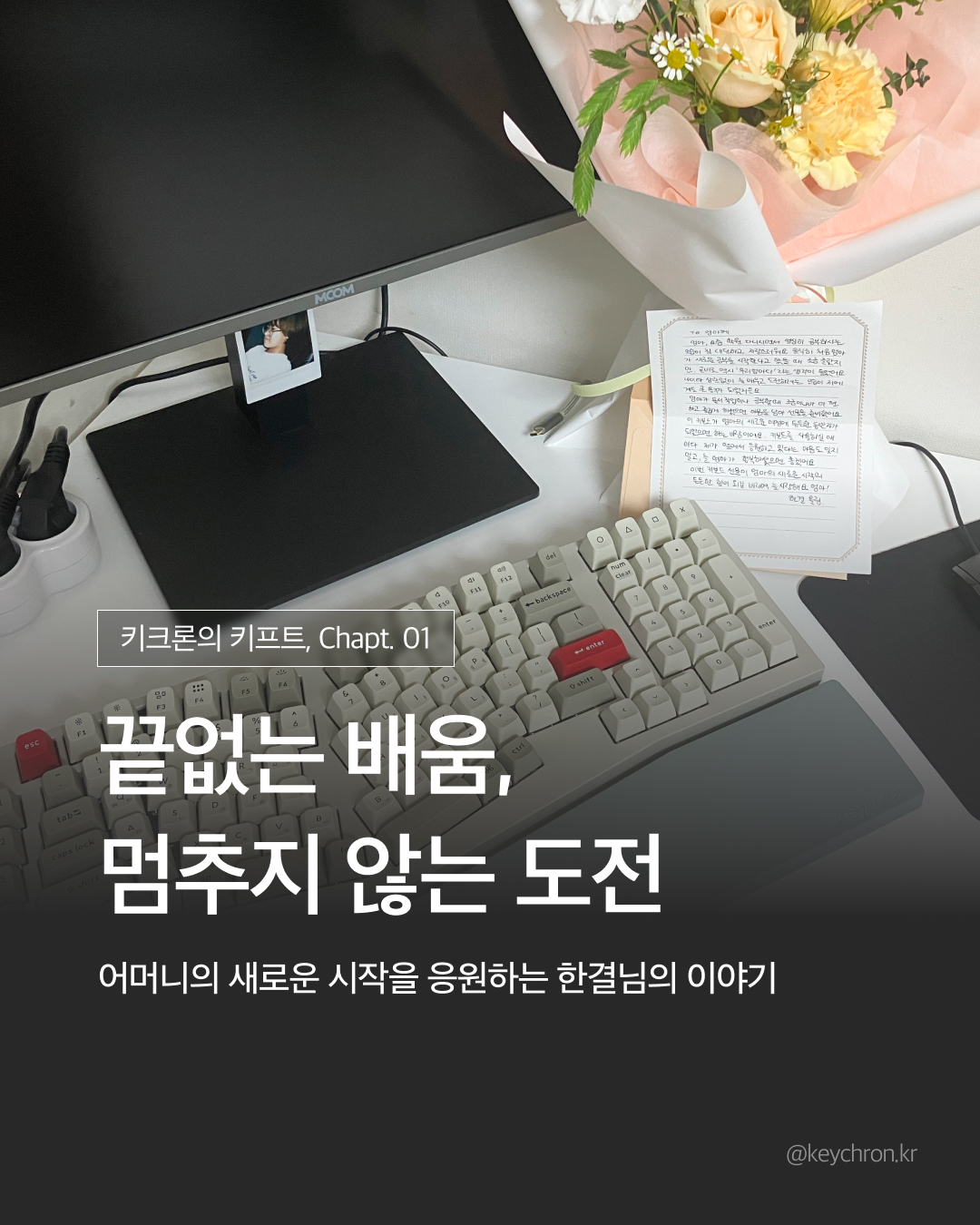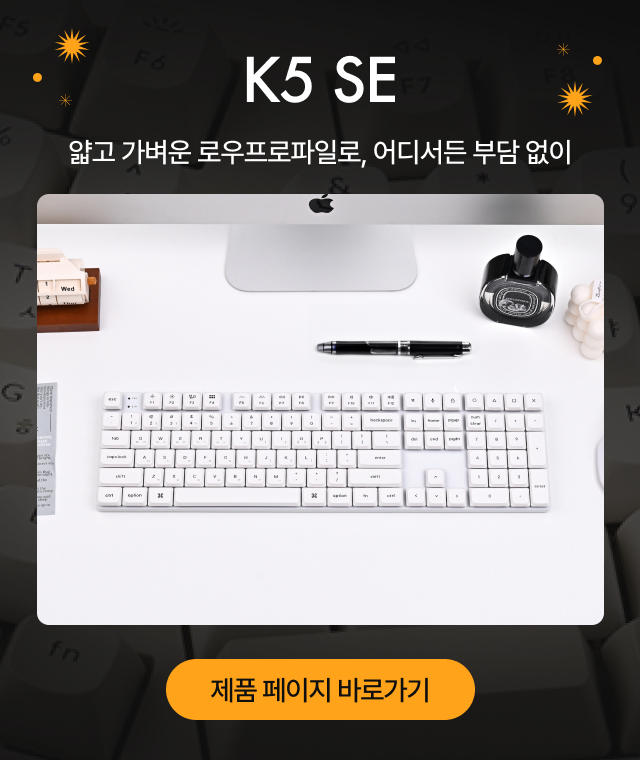 사무실에서도, 집에서도 안정적인 타건감은 기본. 여기에 ‘특별한 키캡’이 선사하는 차별화된 경험으로, 일상 속 색다른 재미를 더해 보세요.