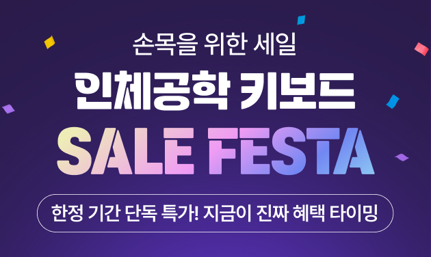 행사 기간 동안 인체공학 시리즈 전 제품을 특별가로 만나볼 수 있으며, 구매 시 100% 증정품도 함께 드립니다. 지금, 당신의 손목이 원하는 키보드를 찾아보세요.