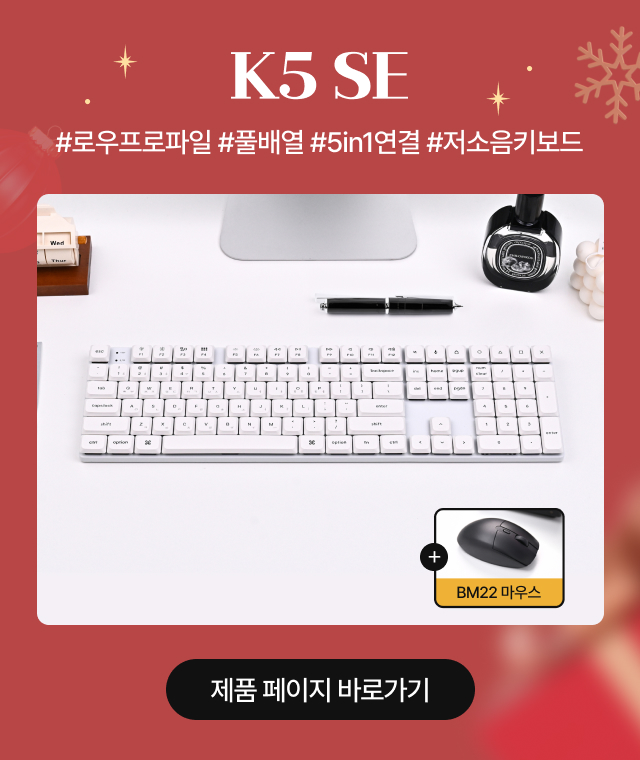 K3 SE / K5 SE 구매 고객에겐 초경량 사무용 마우스도 함께 증정하고 있습니다! 자세한 내용은 버튼 클릭 후 확인해 보세요👇