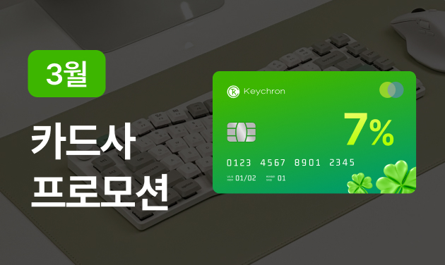 장바구니에 담아두었던 키크론이 있다면 이번 3월 카드사 프로모션에서 7% 추가 할인 혜택까지 함께 확인해보세요🔎