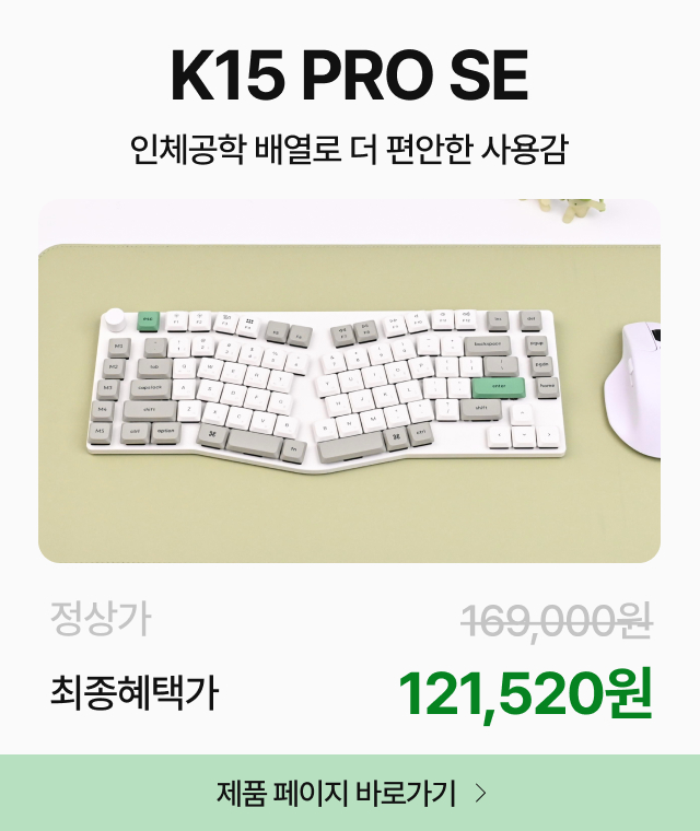 사무실에서 쓰기 좋은 풀배열 K10 PRO SE2와 손목 부담 덜어주는 인체공학 배열 K15 PRO SE 두 제품을 이번 브랜드 위크에서 혜택가로 만나볼 수 있습니다.
