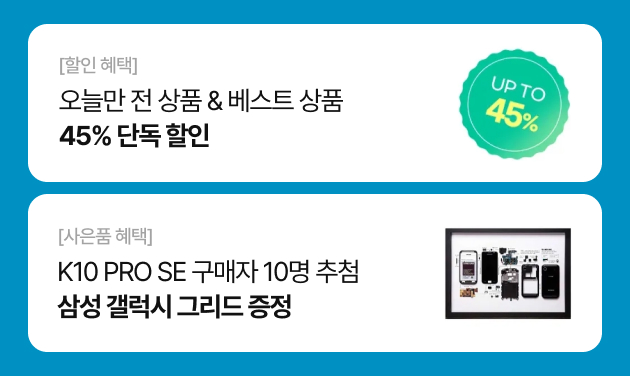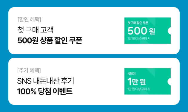 3월 26일! 오늘 단 하루만 진행하는 전 상품 & 베스트 상품 45% 단독 할인🎈 할인 혜택에 추가 쿠폰은 기본! 구매하신 분들께는 사은품 추첨 혜택에 SNS 후기 남기면 네이버페이 1만 원도 100% 드려요.